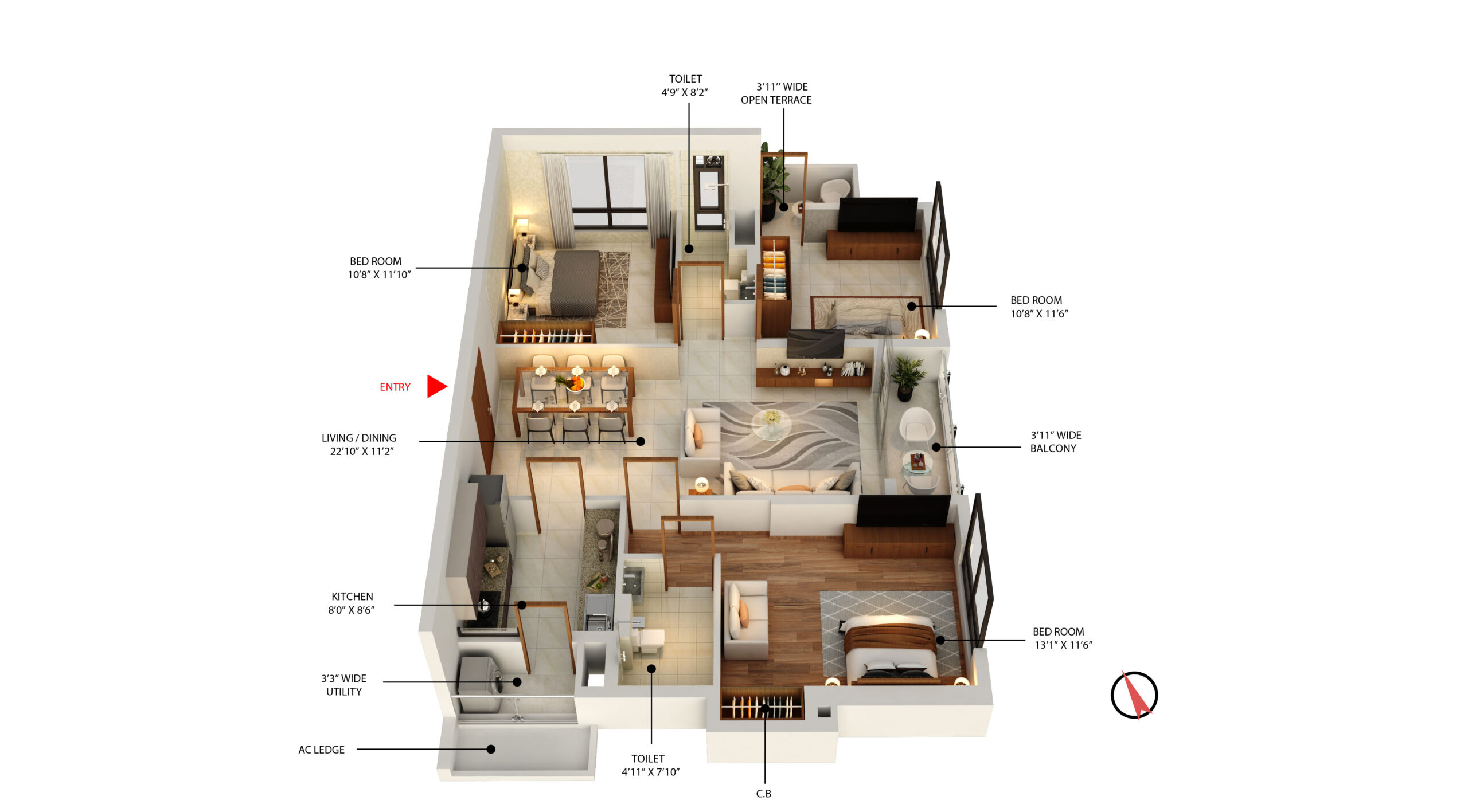 - Electricals points in all bedrooms, living / dining, kitchen, toilets